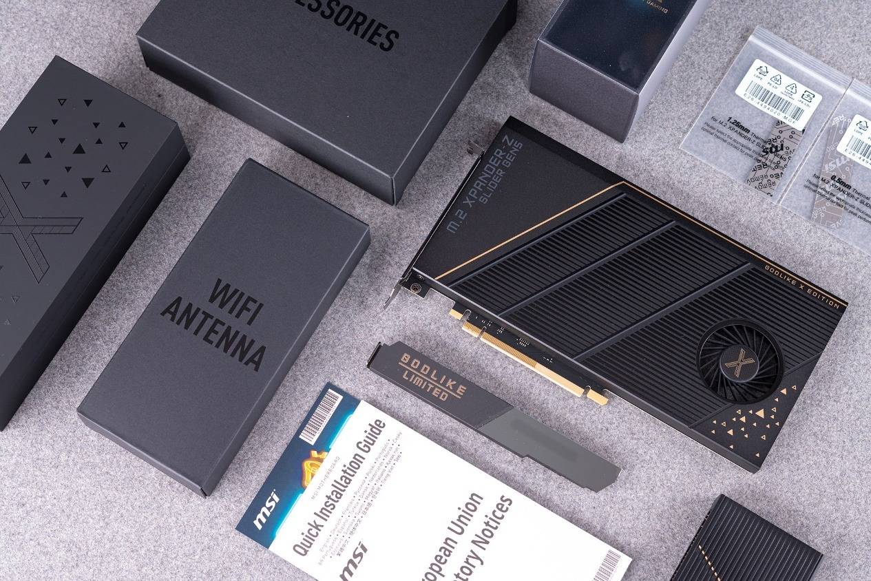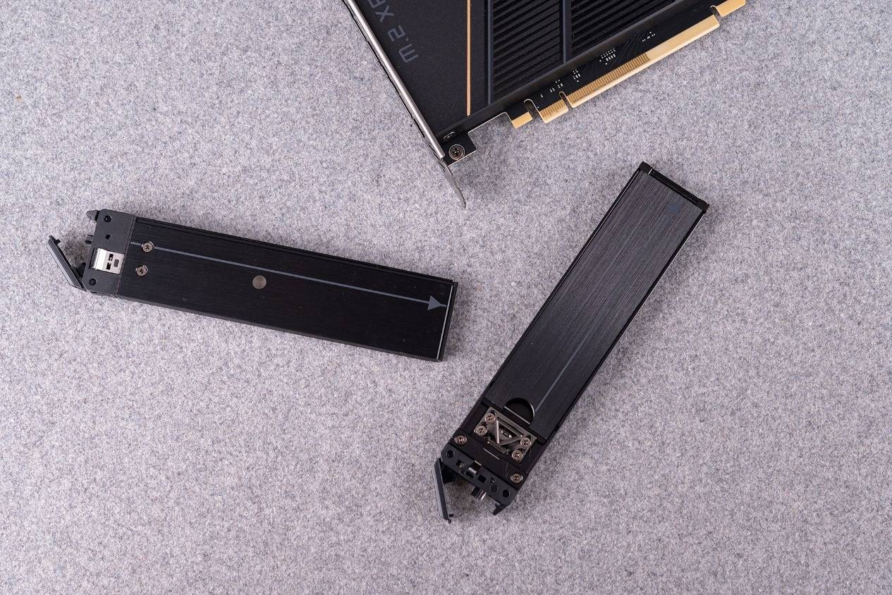 配件里最大块的当属那张PCIe 5.0速率的M.2扩展卡,采用全金属外壳设计,看起来就像是一张迷你一样。