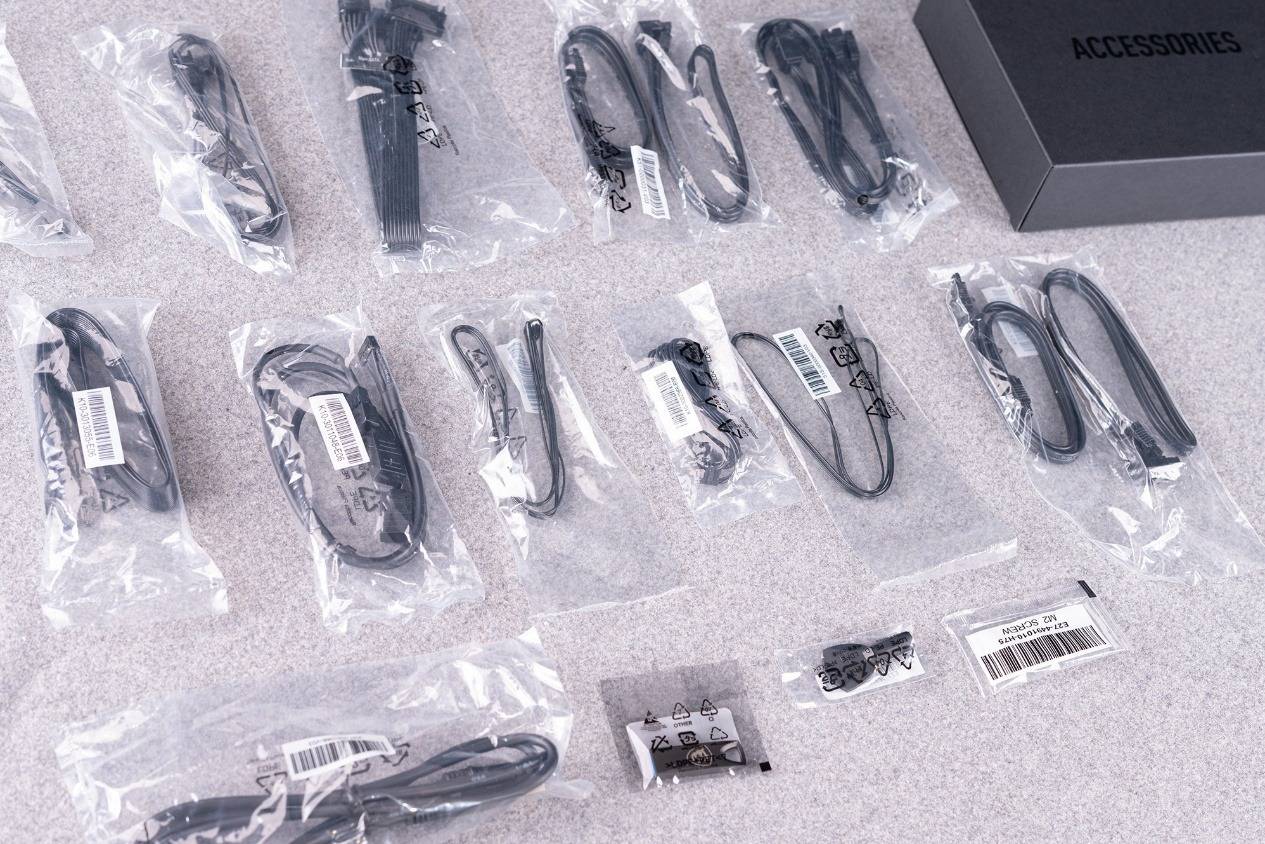 至于线缆就有点多了,这里说几条重要线缆:一条是Ez Conn-header连接线,这个是微星新一代主板都标配的,配合主板上的Ez Conn接口可扩展出1个4-pin PWM接口、1个ARGB接口和1个RGB接口。另外还有两条是配合EZ Control Hub使用的,分别是Ez Link连接线和集线盒供电线,这条供电线是与电源的SATA接口相连接的,用来给接到集线盒设备供电。
