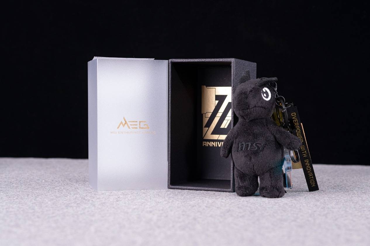 最后则是这个定制的毛绒公仔了,熟悉的玩家应该不陌生了,它就是微星经典的小红龙,不过为了彰显GODLIKE X EDITION的豪华,化身为了更具电竞感高级感的黑色,有一说一还挺帅的。