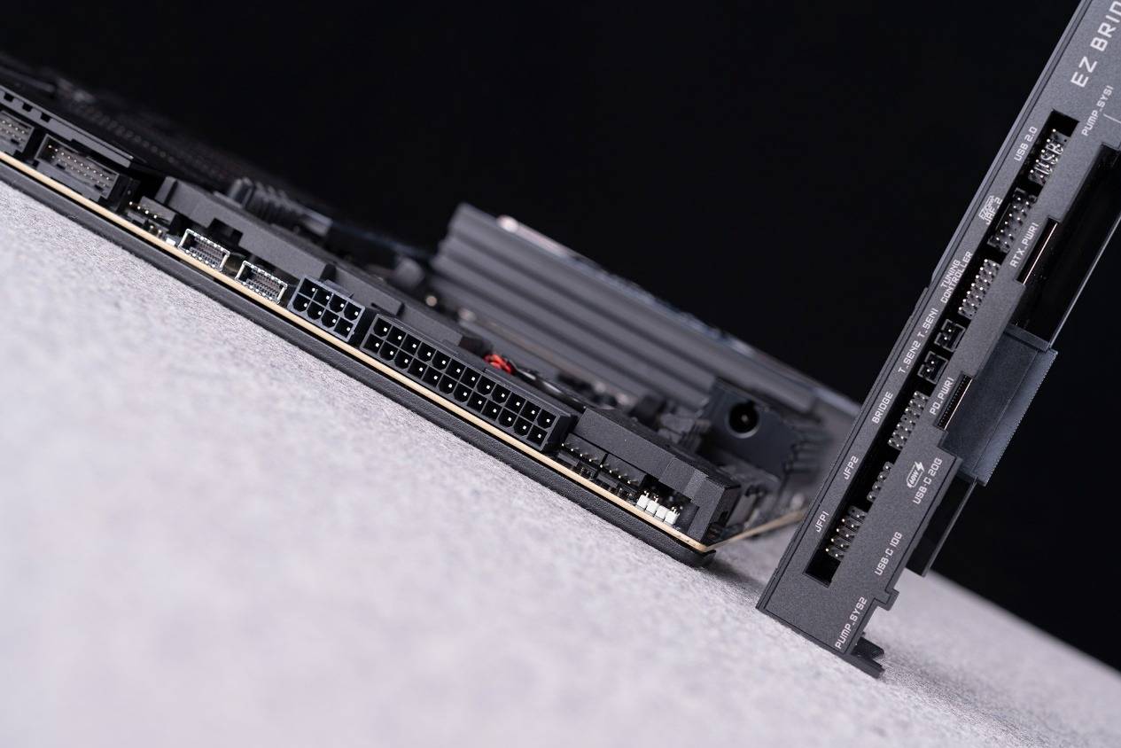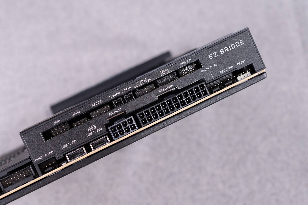 更令人惊喜的是,这块主板还搭载了 EZ Bridge 无线连接模组与 EZ Control Hub 集中控制模块,这一创新设计不仅让主板摆脱了多余线缆的束缚,呈现出简约整洁的装机视觉效果,更极大降低了高端平台的装机门槛 —— 无需复杂接线,即可实现硬件协同与功能控制,让每一位用户都能轻松享受旗舰装机的乐趣。