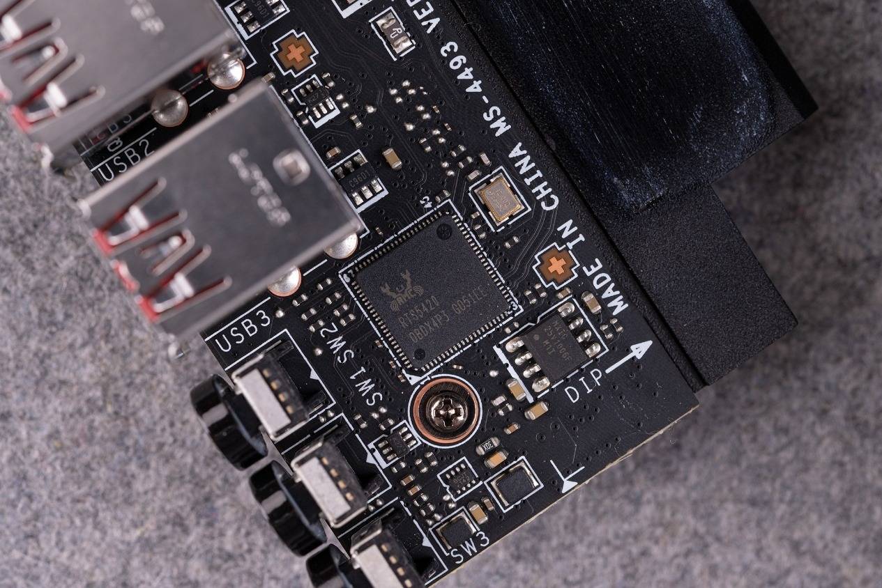 这个设计我们在X870E CARBON WIFI暗黑主板上也见到过,6个USB接口主要是这款小小的瑞昱RTS5420芯片扩展。