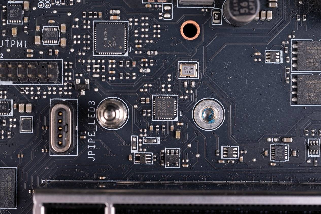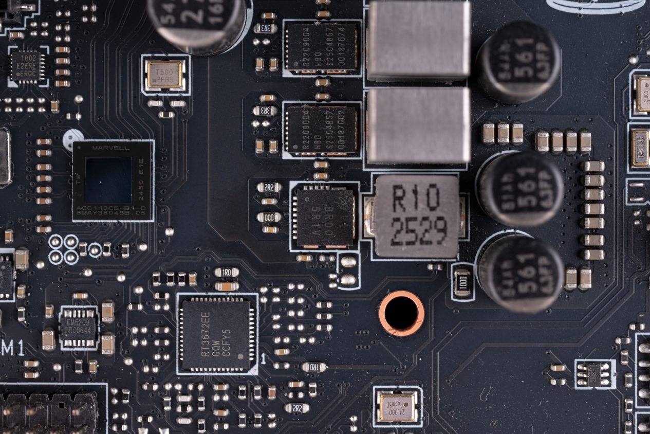 剩下的1相Misc供电则在左侧的最后一颗,是来自Alpha & Omega的BR00,其主控芯片则是立琦的RT3672EE。