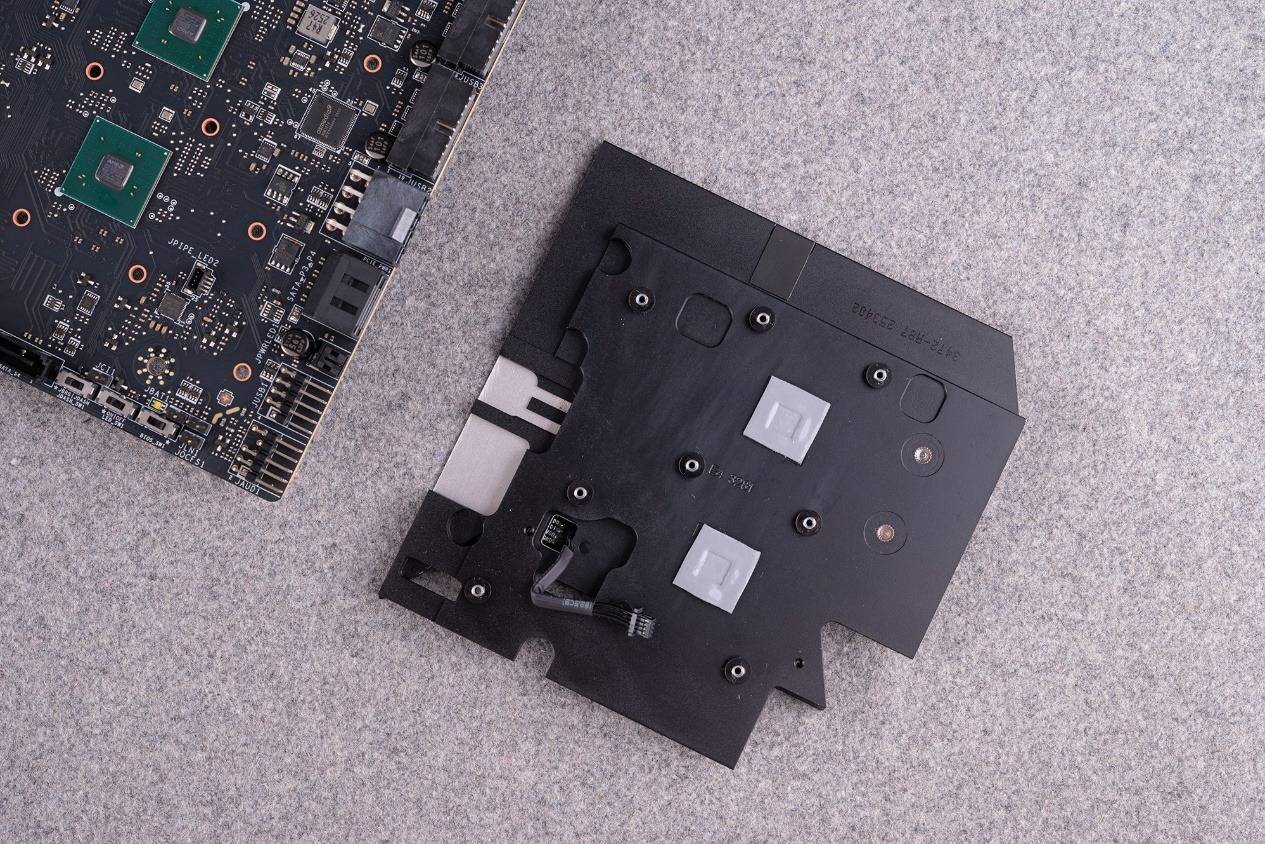 视角转到右下角的散热装甲,有一说一,这块散热装甲还是挺有份量的,足足用了8颗螺丝去固定。