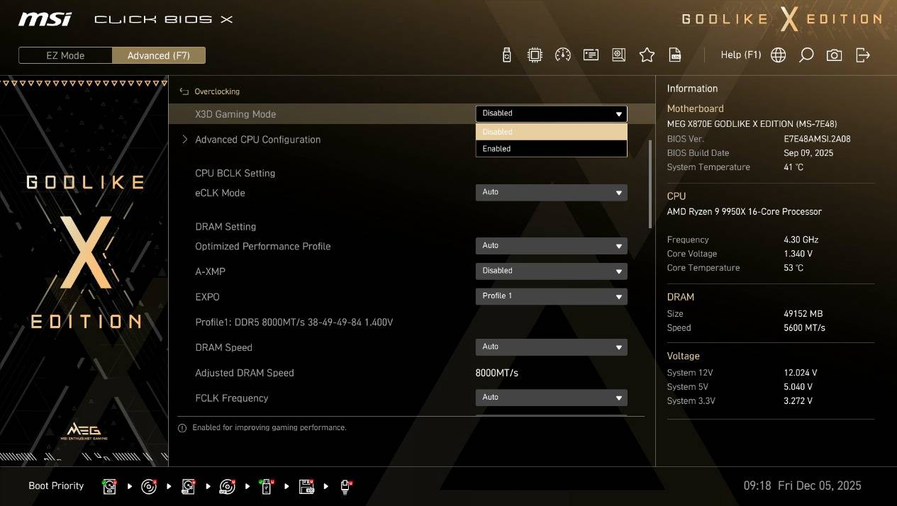 如果你是X3D处理器,这里还能找到专属的X3D Gaming Mode,开启以后能够进一步释放X3D处理器的游戏性能!