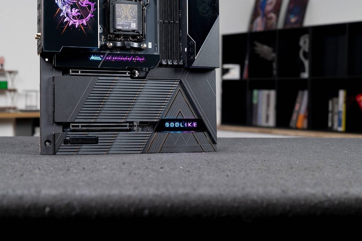 不得不说GODLIKE就是GODLIKE,不仅仅硬件配置顶级,情绪价值也给你拉满了,整体观感还是相当出众的,特别是开启RGB灯效以后,远远望去,主板有种不一样的美感。