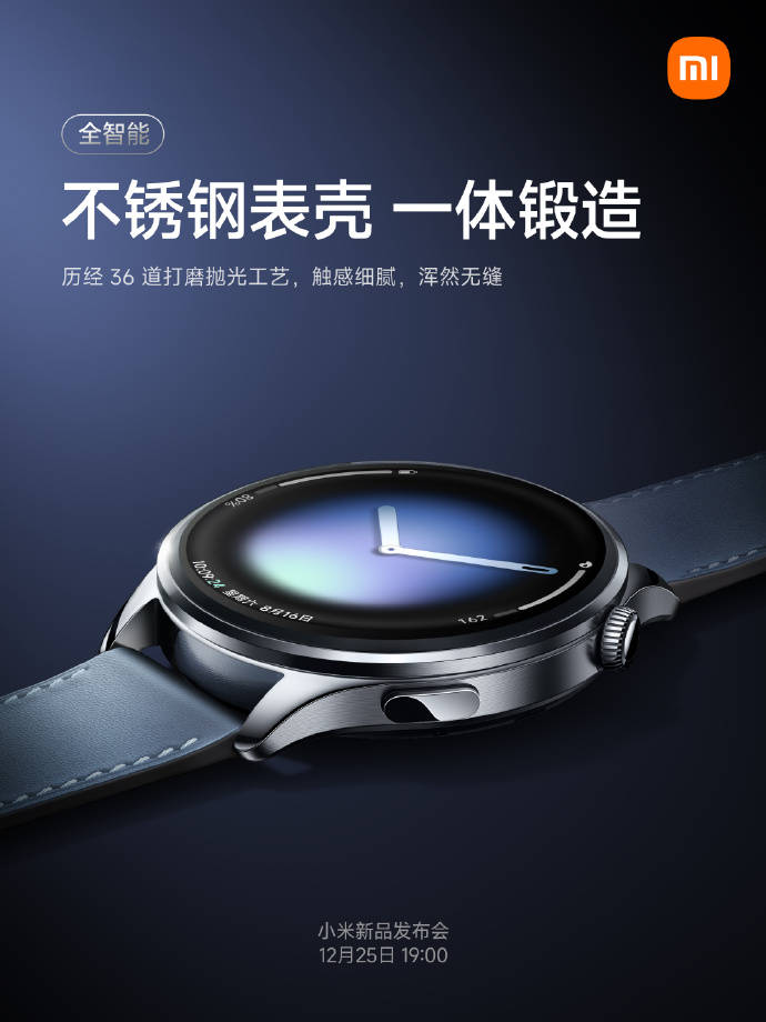 — 小米手表5定档12月25日发布,专业健康监测功能升级 —