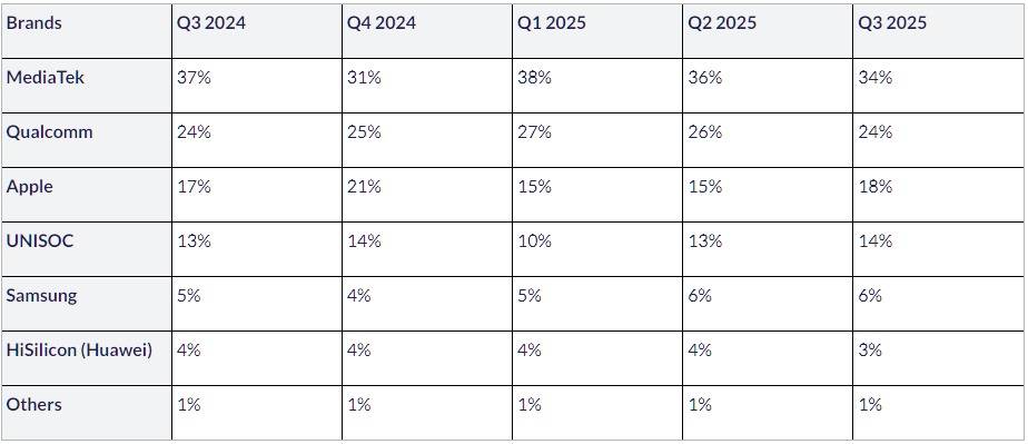 — 大幅领先友商!联发科2025 Q3再夺全球智能手机AP-SoC市场份额第一! —