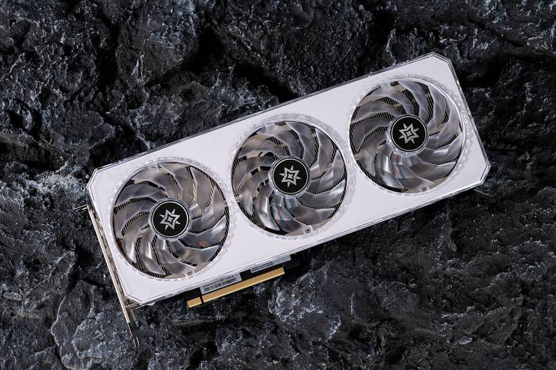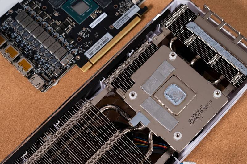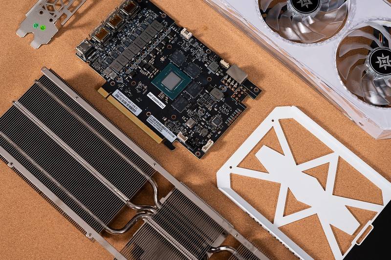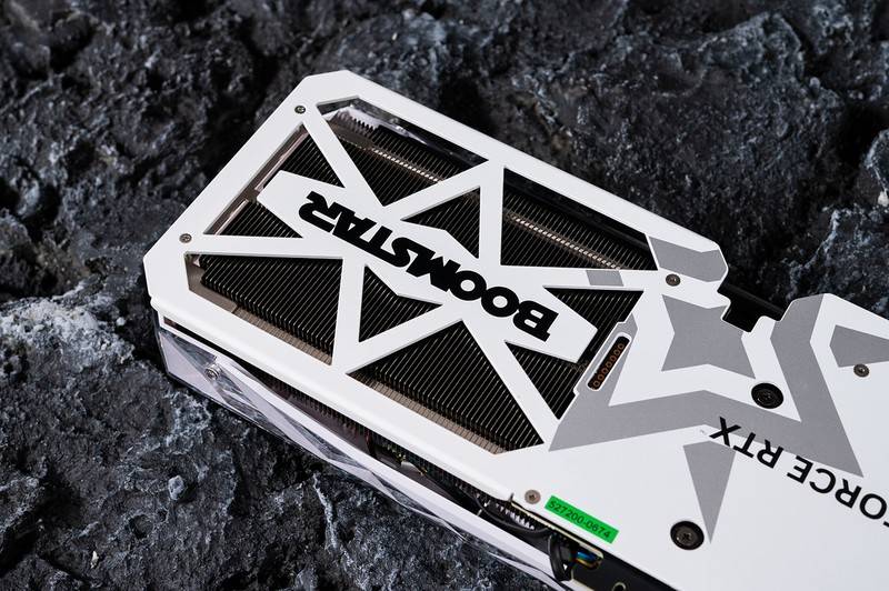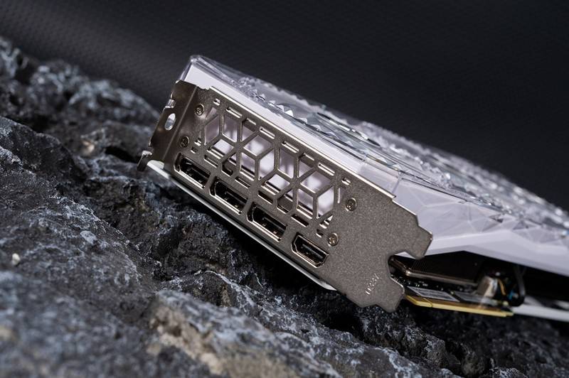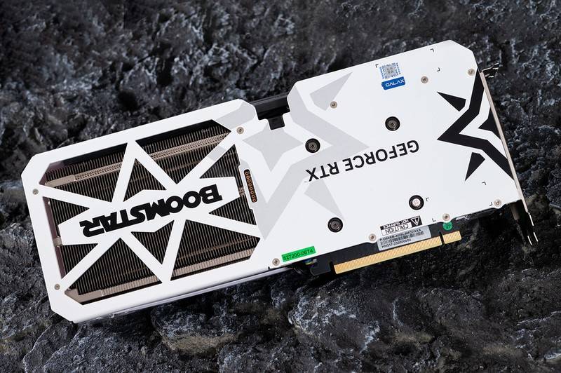 翻转显卡,看看它的背面,一体成型的金属背板有效提升PCB的防护性,同时通体白色的喷涂工艺与正面交相辉映,延续了纯白美学的传统。