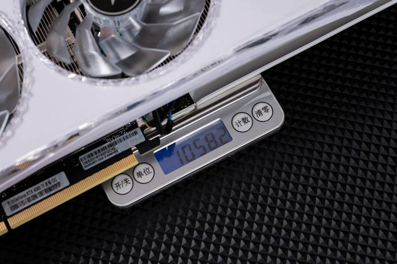 至于重量方面,相比大家之前也见过砖头重量的RTX 4090或RTX 4080,不过这次影驰RTX 4060 Ti 8G星曜OC瘦身成功,整张卡的重量只有1kg出头,比它的老大哥轻多了。