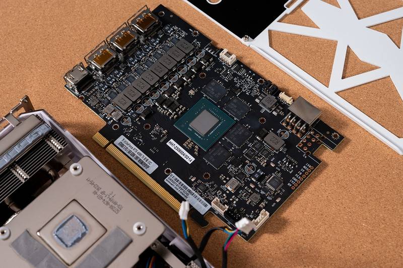 先看看这张显卡的PCB,单是看这个PCB的设计就知道这是影驰自研的非公版设计。整张PCB采用6层高规格工艺打造。在小细节上也下了血本,全SMD元件覆盖,颜值与性能我都要!