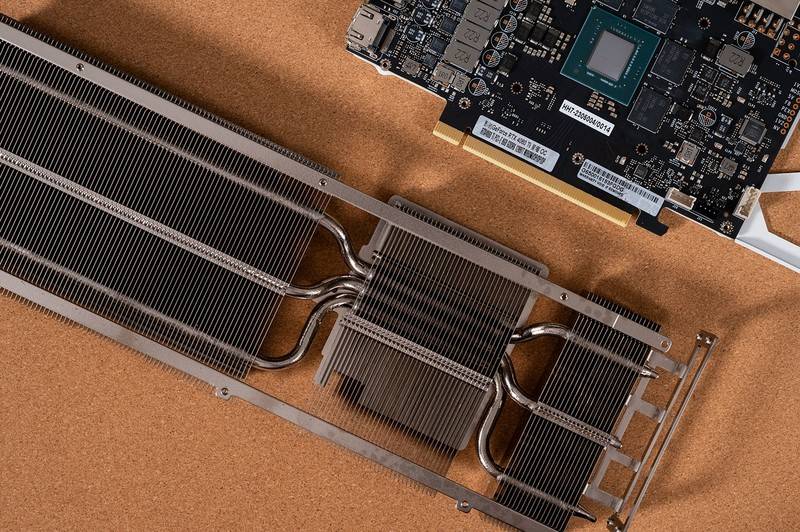 散热鳍片之下藏着3根Φ6mm的镀镍复合热管,贯穿整个散热器,回流焊接工艺加持保证高效导热。