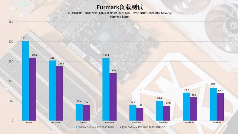 为了验证这个说法,这里我们还利用HWINFO64软件与FrameView软件双重记录多款显卡的功耗表现情况,从图中可以看到影驰RTX 4060 Ti 8G星曜OC整体功耗控制相当出色,在所有测试场景内近乎都是维持在160W左右!