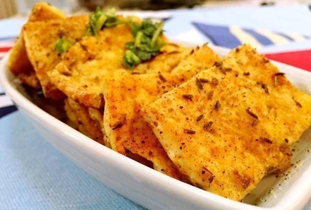 — 美食制作:虾仁塔菜、椒盐南瓜片、酥香鱼条、孜然香烤豆腐的教程 —