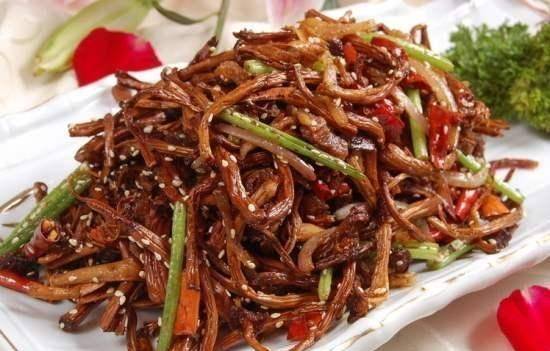 — 四道美味佳肴推荐:青丝小海鲜、雪媚娘、筋头巴脑羊排锅、干煸茶树菇 —