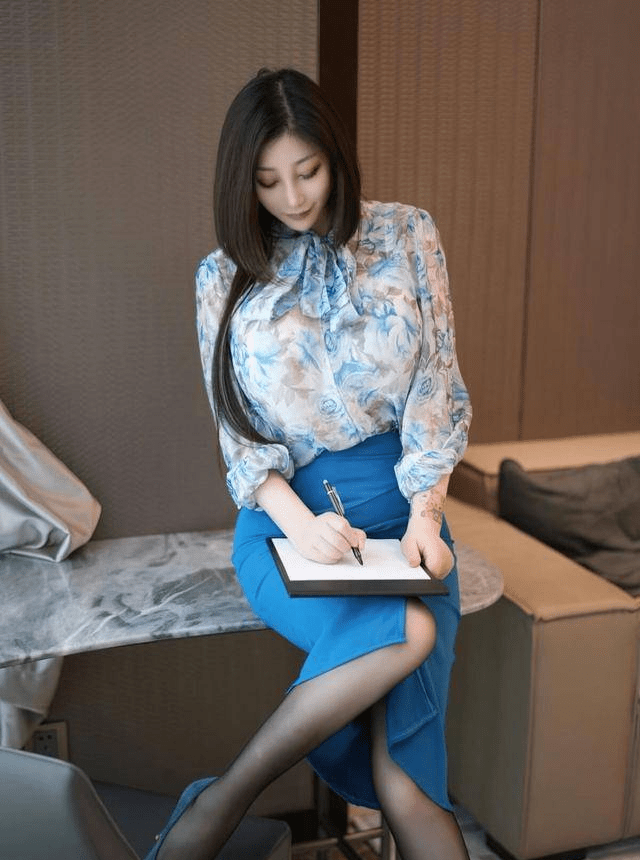 — 活力四射!蓝色花纹上衣搭配红色开叉裙,彰显明媚洋气气质佳 —