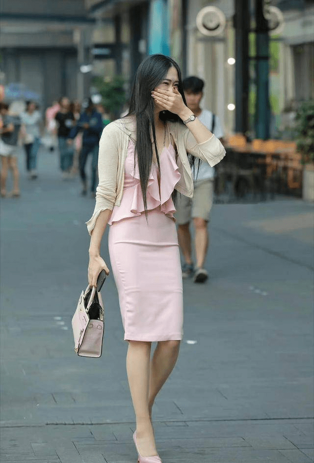 — 展现女性的优美身姿,亮粉色连衣裙收腰设计凸显纤细腰线 —