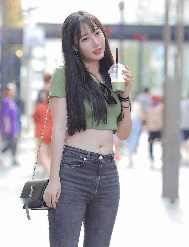 — 绿色T恤搭配牛仔裤后,展现女性曼妙身姿,在夏季穿好看又时髦 —