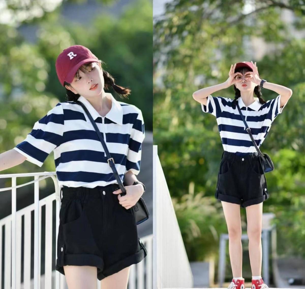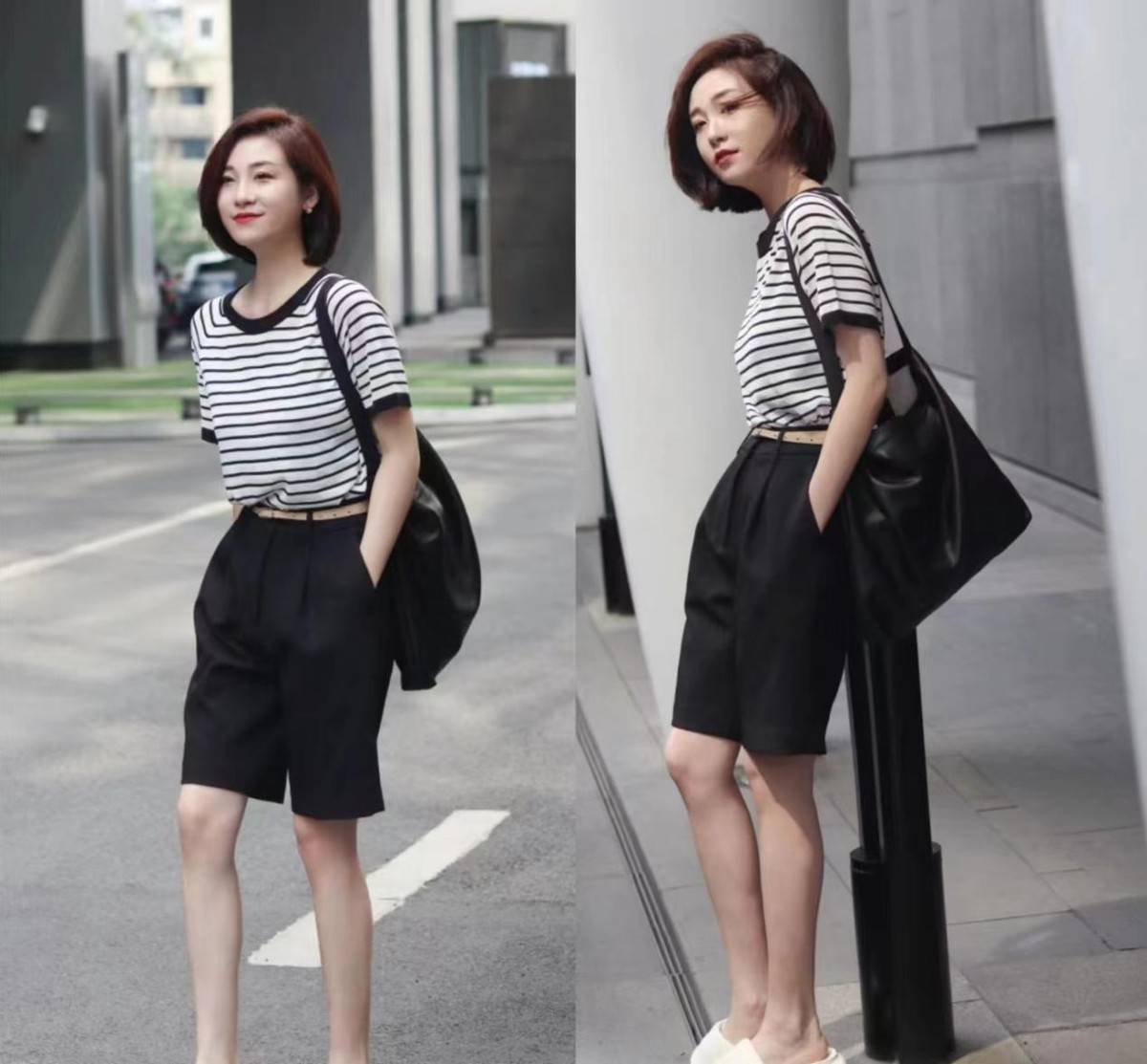 — 夏季穿搭福音,“条纹衫+短裤”轻松搭配,时尚舒适,适合各年龄段人群 —