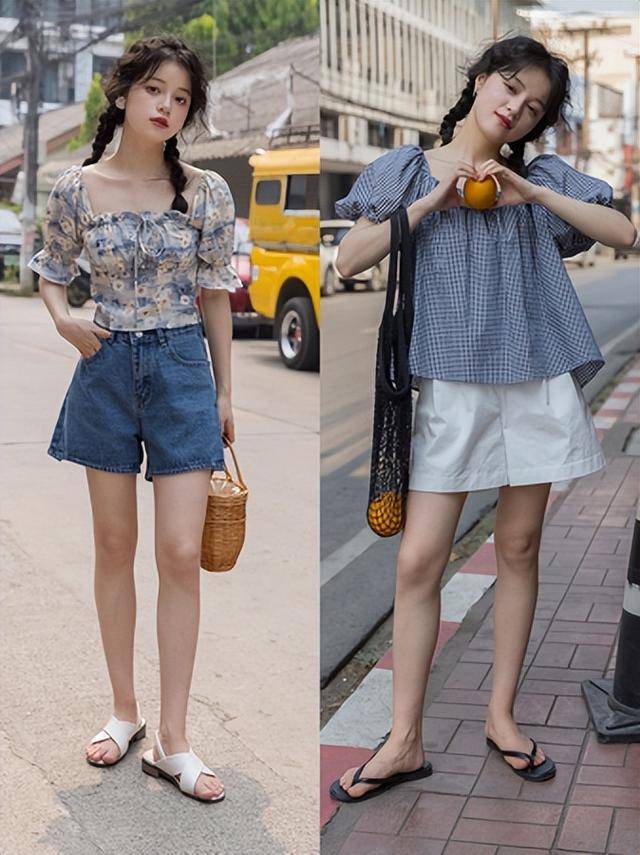 — 清新舒适甜美:蓝色小背心搭配牛仔短裤惊艳呈现 —