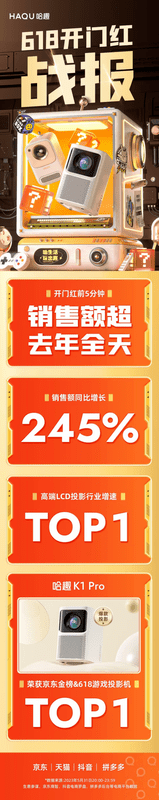 — 618高端LCD投影黑马!哈趣K1 Pro登顶618投影游戏机TOP 1 —