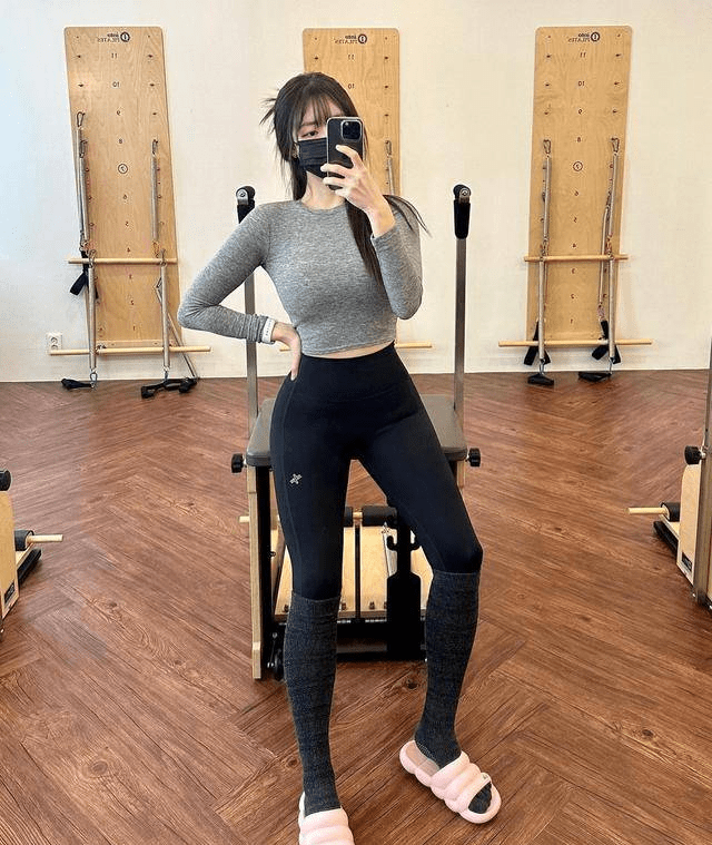 — 如何搭配粉色T恤和卡其色瑜伽裤以凸显完美身材和气质 —