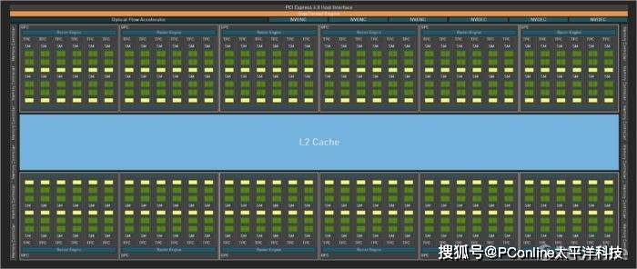 另外缓存方面Ada Lovelace架构也进行了大规格的提升,首先每个SM单元中单独配上了128 KB的缓存,这样RTX 4090显卡中就实现了163MB L1/共享内存。其次核心的二级缓存进行进行了重新的设计,并且完整AD102核心是96MB二级缓存,而RTX 4090显卡拥有72MB二级缓存,也可能是因此Ada Lovelace架构核心对显存位宽的依赖性并不高。