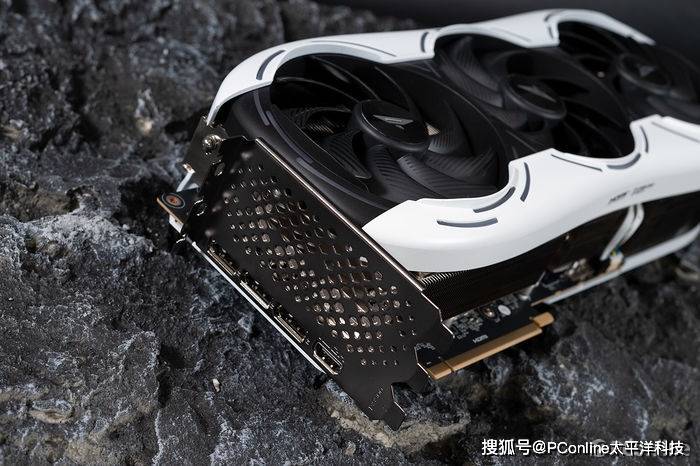 再聊聊它的外观,这回的索泰GeForce RTX 4090 PGF OC可以说变了也可以说没变,变的是相比前代的PGF系列,采用了更前卫的设计理念,不变的是继承了AMP系列的设计风格,圆润的外观在这个棱角分明的时代,可谓是赚足了眼球,白色的机身设计更符合时下的潮流,颜值党看了都直呼过瘾。