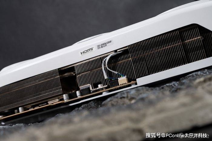 转头看看显卡底部,一排排散热鳍片已经快要突出外壳了,可以预见这款显卡的散热相当出色。