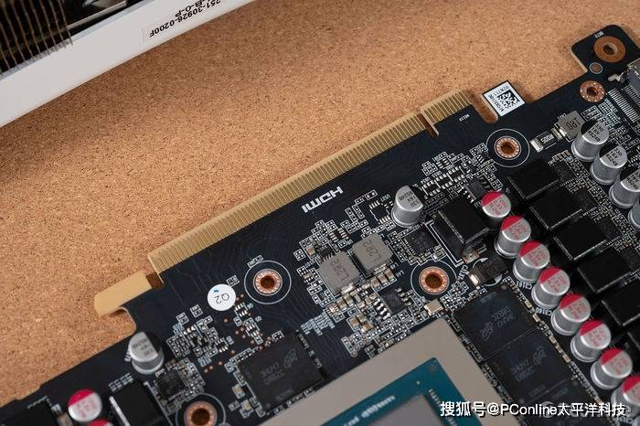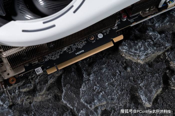 显卡底部还可以看到显卡的PCIe金手指,标准的PCIe 4.0 x 16速率,它可以为显卡提供更快的传输速度。