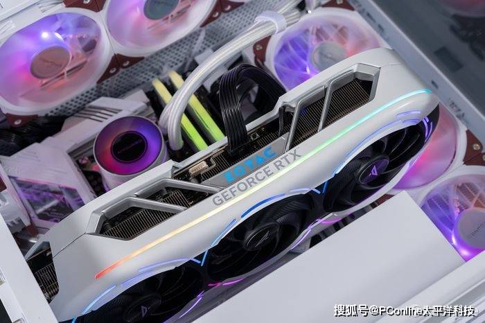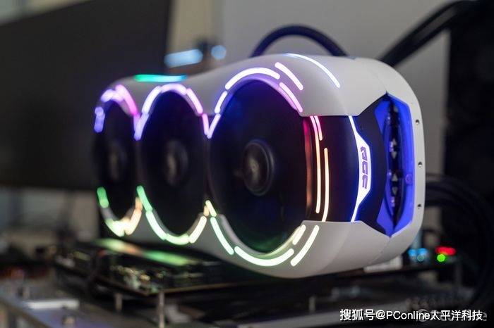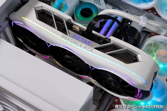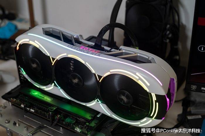 显卡通电后,顶部的索泰ZOTAC信仰Logo灯率先亮起,多彩的变化加上醒目的设计,辨识度算是拉满了。