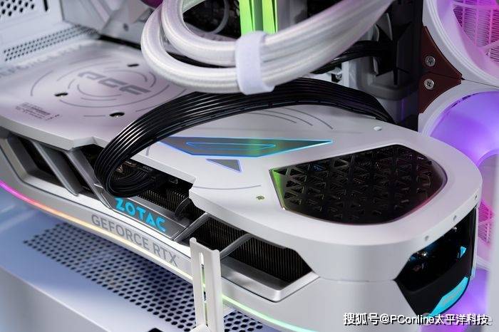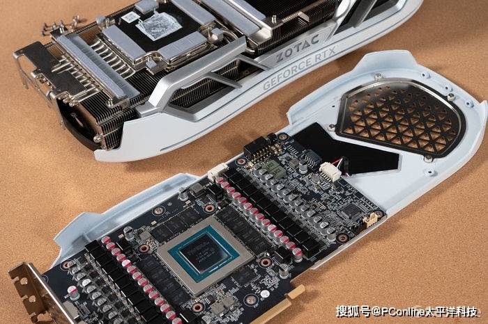 索泰可不光在正面安排了RGB,在背部也藏了RGB设计,独有的PGF Logo信仰灯与顶部的ZOTAC Logo信仰灯相互呼应,共同点缀着这张高贵的卡皇。
