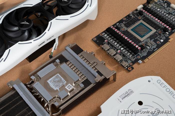索泰RTX 4090 PGF OC虽然看起来很厚实,不过拆解起来还是相当轻松的,传统的“三明治”结构。卸下金属背板上的螺丝后就可以分离整个散热系统与PCB板。