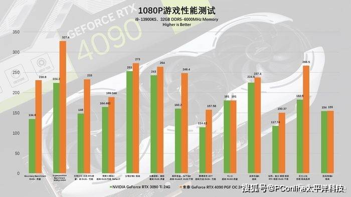 再来就是玩家最期待的游戏性能测试了,想必买这张卡的玩家应该都不缺4K显示器吧,这里我们就着重说说它的4K以及8K表现了。不过还是给大家看看它在1080P跟2K的表现,索泰RTX 4090 PGF OC就是乱杀,大部分游戏都在200 FPS以上,这已经不是入门电竞的水平了,而是专业电竞的表现。