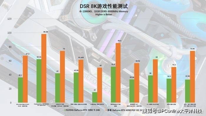 8K在以前只能说是幻想,现在它已经成为了现实!在8K游戏测试方面,索泰RTX 4090 PGF OC显卡能够将大部分游戏跑到60 FPS以上,这已经远远超乎笔者的想象,而像一些优化好的游戏,例如《极限竞速:地平线5》甚至能有85 FPS左右的表现,这还只是DLSS 2的表现,相信加上DLSS 3,性能应该更为强悍。