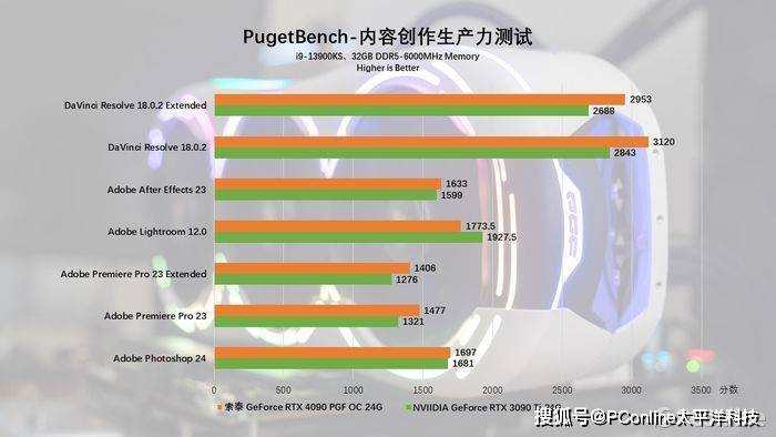 游戏表现可以说是相当的惊艳,那生产力创作上索泰RTX 4090 PGF OC又有怎样的惊喜!这里我们选择PugetBench、PCMark 10、Blender等多款常见的测试软件,来测试这款显卡在日常办公、视频内容生产、专业渲染等方面的性能表现。