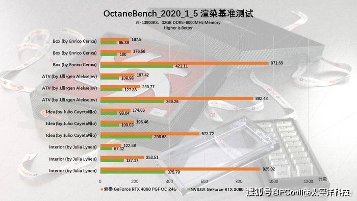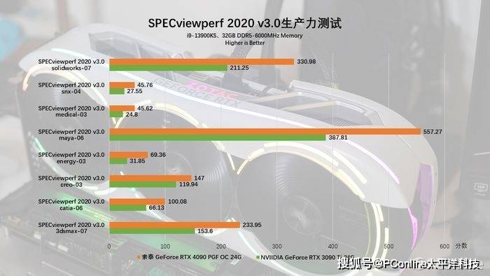 同样出色的还有OC渲染器,索泰RTX 4090 PGF OC的表现真的是顶级的存在,性能也提升了95%以上,想要提升专业性能的用户不妨考虑一下这张索泰RTX 4090 PGF OC,顶级的显卡顶级的体验,当然你也将获得顶级的效率。