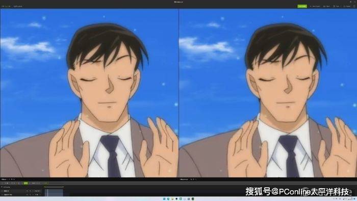 我们将本地的360P画质视频进行RTX VSR 4档渲染,从画面上看,开启了VSR技术后,右侧的渲染视频确实比左侧原生的视频要清晰许多,并且肉眼可见噪点的减少,观感上要明显好于原生的360P视频。