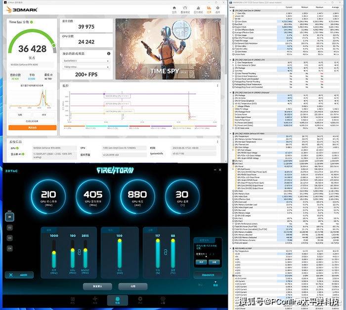 超强的超频潜力,缘于索泰RTX 4090 PGF OC极致的散热配置,最后我们就来试试这款显卡的散热性能表现~