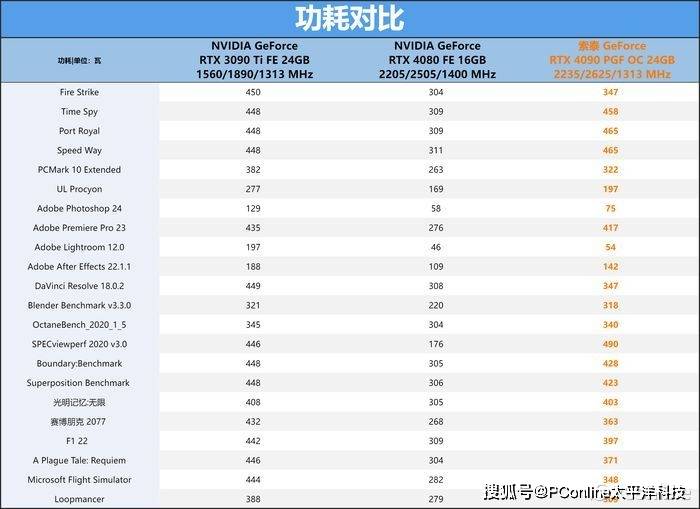 就看这个表现,你就说索泰RTX 4090 PGF OC牛不牛吧!用更低的功耗实现更强的性能,完全吊打上代卡皇,这才是顶级RTX 4090应有的表现。老黄的Ada Lovelace架构配合TSMC的4N工艺,40系的功耗比堪称逆天!