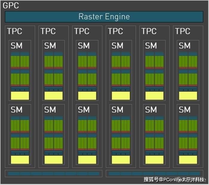 刚才我们已经说到,一个完整的Ada Lovelace架构AD102核心内部拥有12个GPC,而每个完整的GPC中包含了一个专用的Raster Engine(光栅化引擎),两组ROPs共16个ROP(光栅化处理单元),以及6个TPC与12个SM单元。