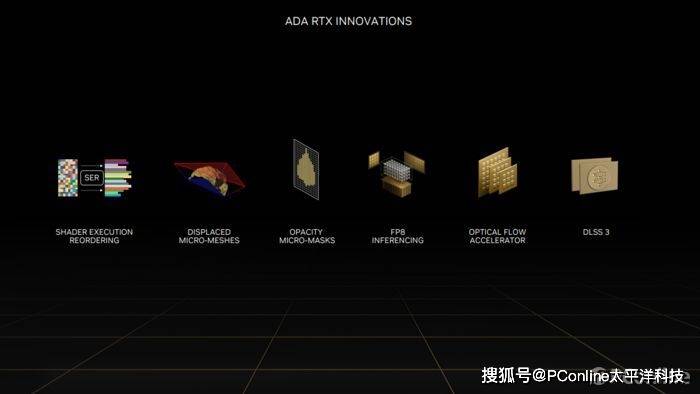 从Turing架构开始,NVIDIA首次在显卡中加入了加速光线追踪的RT Core单元,以及面向AI推理的Tensor Core单元,这革命性的创新使实时光线追踪成为可能。而Ampere架构则是全面的架构改进,在加入新一代的二代RT Core和三代Tensor Core基础上,还有着更先进的SM单元设计,这样显卡工作效率那是翻倍的提升。而来到Ada Lovelace架构,同时是以效率提升为大前提,自然是引入了最新的第三代 RT Cores与第四代 Tensor Cores单元,同时加入众多新颖的黑科技,从执行效率来说Ada Lovelace架构是上代Ampere架构的2倍以上,甚至光线追踪能力更是达到了恐怖的4倍性能。