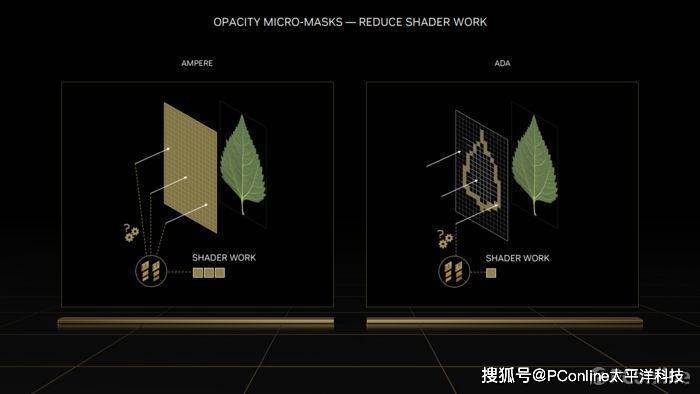 而Opacity Micromap Engine用于直接解析具有非不透明度光线交集的不透明度状态三角形。根据Alpha 通道的不透明,透明与未知等三个不同的块状态进行处理:透明则直接忽略继续找下一个,不透明块则记录并告之命中,而未知的则交给着色器来确定如何处理,这样GPU很大部分都不需要进行着色器的调试处理,能够实现更为高效的性能。