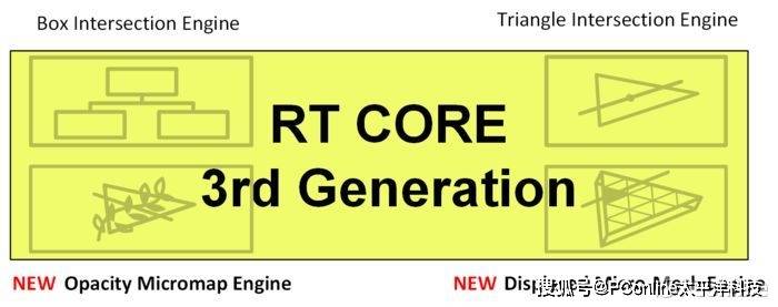 所以在第三代 RT Cores增加了两个重要硬件单元:Opacity Micromap Engine与Displaced Micro-Meshes Engine引擎。Opacity Micromap Engine,主要是用于alpha通道的加速,可以将 alpha 测试几何体的光线追踪速度提高2倍。