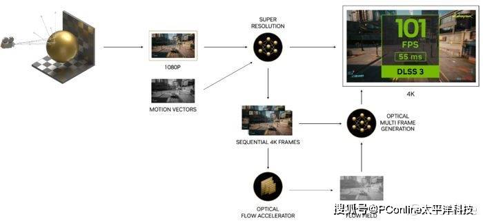 想实现DLSS 帧生成可不简单,这需要配合上Ada Lovelace架构的GeForce RTX 40系列显卡才行。DLSS 帧生成技术原理是:利用 AI 技术生成更多帧,以此提升性能。DLSS 会借助 GeForce RTX 40 系列 GPU 所搭载的全新光流加速器分析连续帧和运动数据,进而创建其他高质量帧,同时不会影响图像质量和响应速度。