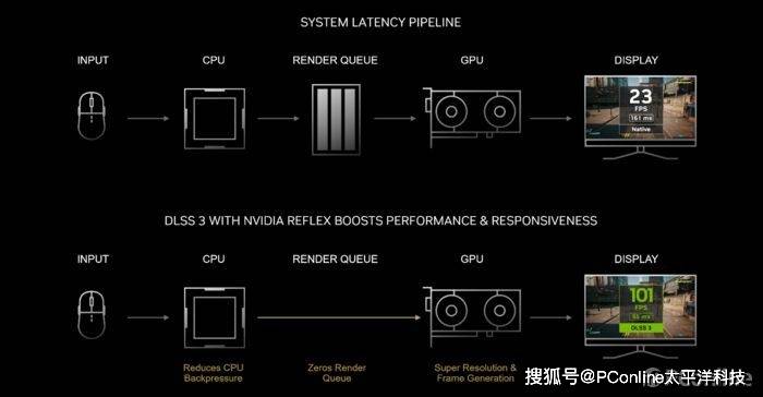NVIDIA Reflex也是DLSS3其中的一环,它可以使GPU和CPU同步,确保最佳响应速度和低系统延迟。