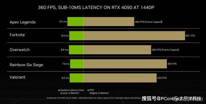 当GeForce RTX 40 系列显卡和 NVIDIA Reflex搭配上后,直接达到1440p分辨率360 FPS的体验,这着实是性能有点强劲了。