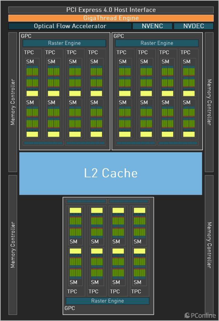 而GeForce GPU 在每个多单元流处理器(SM)中都有一个1级(L1)缓存(最接近和最快的缓存),每个GeForce RTX 40系列图形处理集群(GPC)中最多可以找到12个缓存,然而,由于L1缓存需要离内核非常近,它不可能非常大。