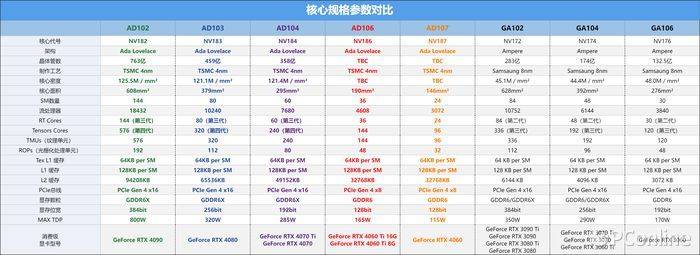 并且由于新一代的GeForce RTX 40系GPU的L2缓存显著增加,这使得在处理核心和 L2 缓存之间传输更多数据成为可能。在各种游戏和综合基准测试中,性能的提升是显而易见的。与2MB二级缓存的性能相比,32 MB二级缓存将显存总线流量平均降低了50%以上,讲人话就是50%的流量减少可以让GPU最大化的利用显存带宽,因此游戏帧率也不输大位宽的显卡。