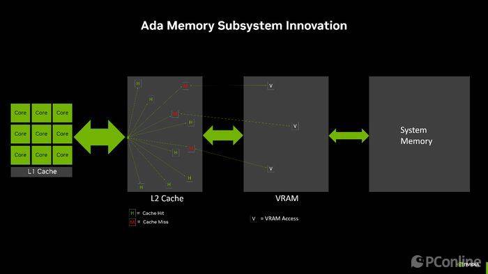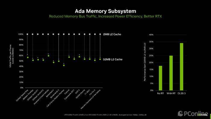 既然都说到缓存了,就不得不说说Ada存储子系统的创新之处。首先不得不提的就是缓存的重要性,作为GPU中广为应用的高速缓存,GPU可以更高效更快的进行数据访问与处理,一定程度上可以提高游戏性能和流畅性,同时还能降低功耗。