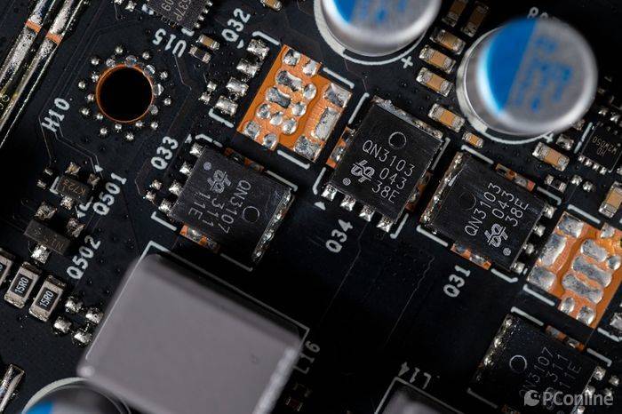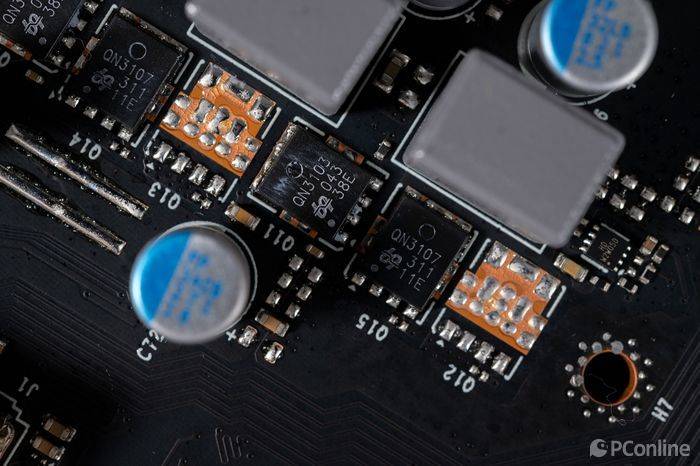 核心供电与显存供电的配置一致,每相供电都有自己的DrMos芯片,芯片来自台湾力祥,不过均采用一上一下两个MOSFET,型号分别是QN3103和QN3107。